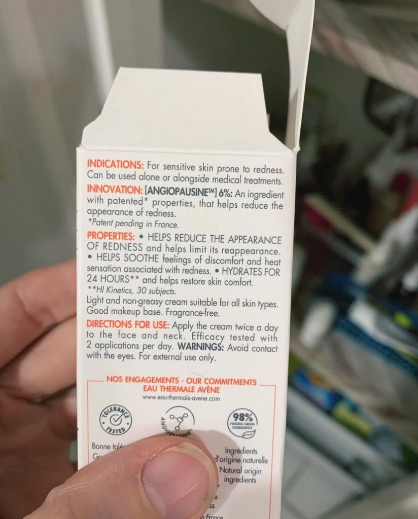 The last thing (and one of the most important findings for my skin healing) has been this face cream from Avene, called Redness Expert. I found this by accident but it looked like it was promising so I ordered it and when I say it is a miracle worker, I mean it!
