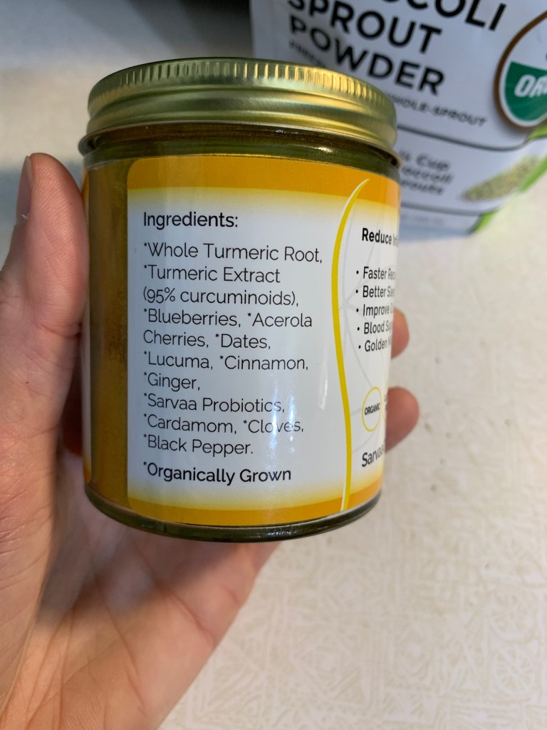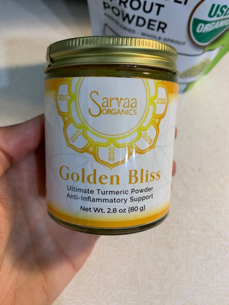 Other superfoods I am currently taking in daily are wild blueberries, and Golden Bliss from Sarvaa Organics which is an anti-inflammatory turmeric/spice/superfood powder you can use to make golden milk or add to anything really. I add it to my oatmeal or yogurt daily. It also has their own spore biotics in there (I’ve been using it since 2017!). Turmeric is supposed to also help get rid of candida in the gut.