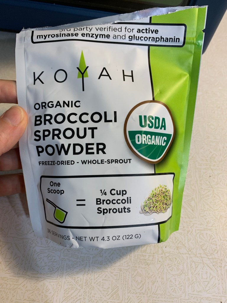 The 3rd thing I started doing was adding broccoli sprouts to my diet. They are hard to find good quality where I live, but I came across a brand called Koyah that makes freeze dried broccoli sprouts and other super food powders that are tested to make sure they have glucoraphanin, and myrosinase which are the reason they are so nutritious.