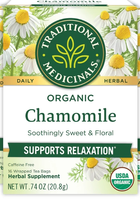 Traditional Medicinals ginger and chamomile tea